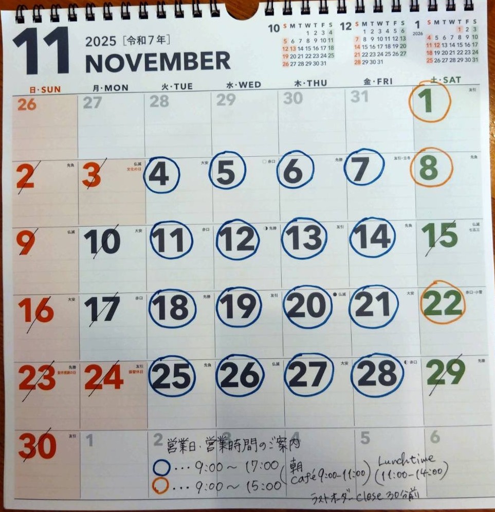 2025年 11月カレンダー